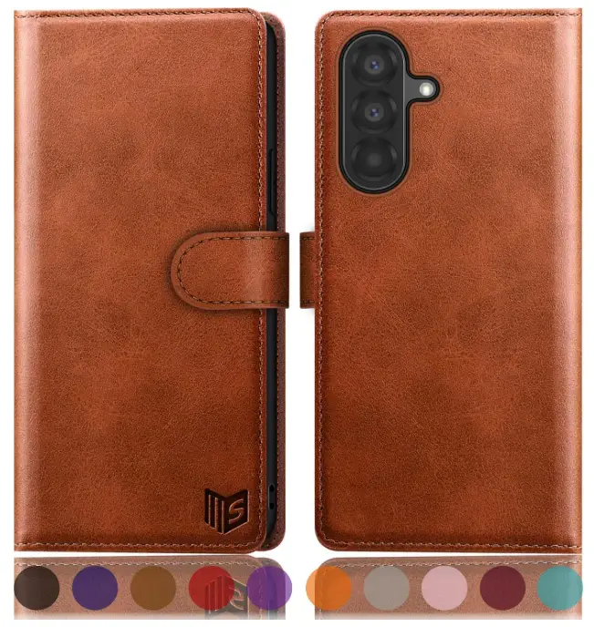 The Suanpot Wallet Case for Samsung Galaxy S25 FE 5G offers reliable protection with its durable PU leather design and snug, precise fit. Its RFID-blocking card slots help keep your credit cards and ID secure, adding peace of mind for everyday use and travel. The light coffee flip cover provides both style and convenience, letting you carry essential cards and cash without needing a separate wallet