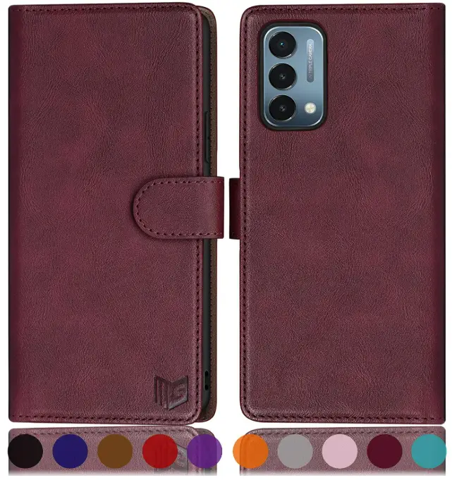 The Suanpot Wallet Case for OnePlus Nord N200 5G provides strong protection with its durable leather design and snug, precise fit. Its RFID-blocking card slots help keep your credit cards and ID secure, making it ideal for everyday use and travel. The stylish wine-red flip folio adds both elegance and convenience, allowing you to carry essential cards and cash without needing a separate wallet