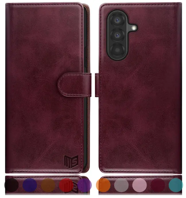 The Suanpot Wallet Case for Samsung Galaxy A36 offers reliable protection with a durable PU leather design and precise fit. Its RFID-blocking card slots keep your credit cards and ID secure, making it a practical choice for everyday use. The elegant wine-red flip cover combines style and functionality, allowing you to carry essentials like cards and cash without a separate wallet